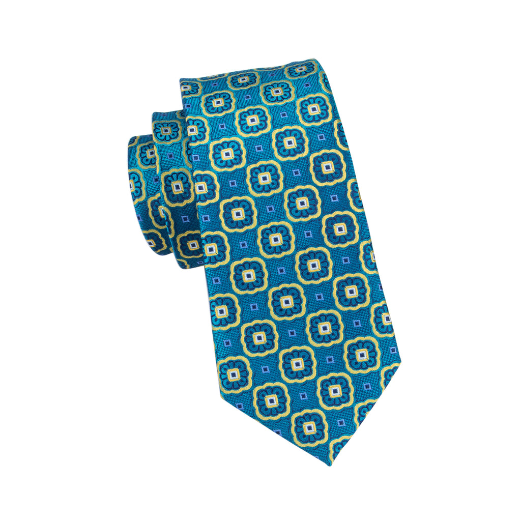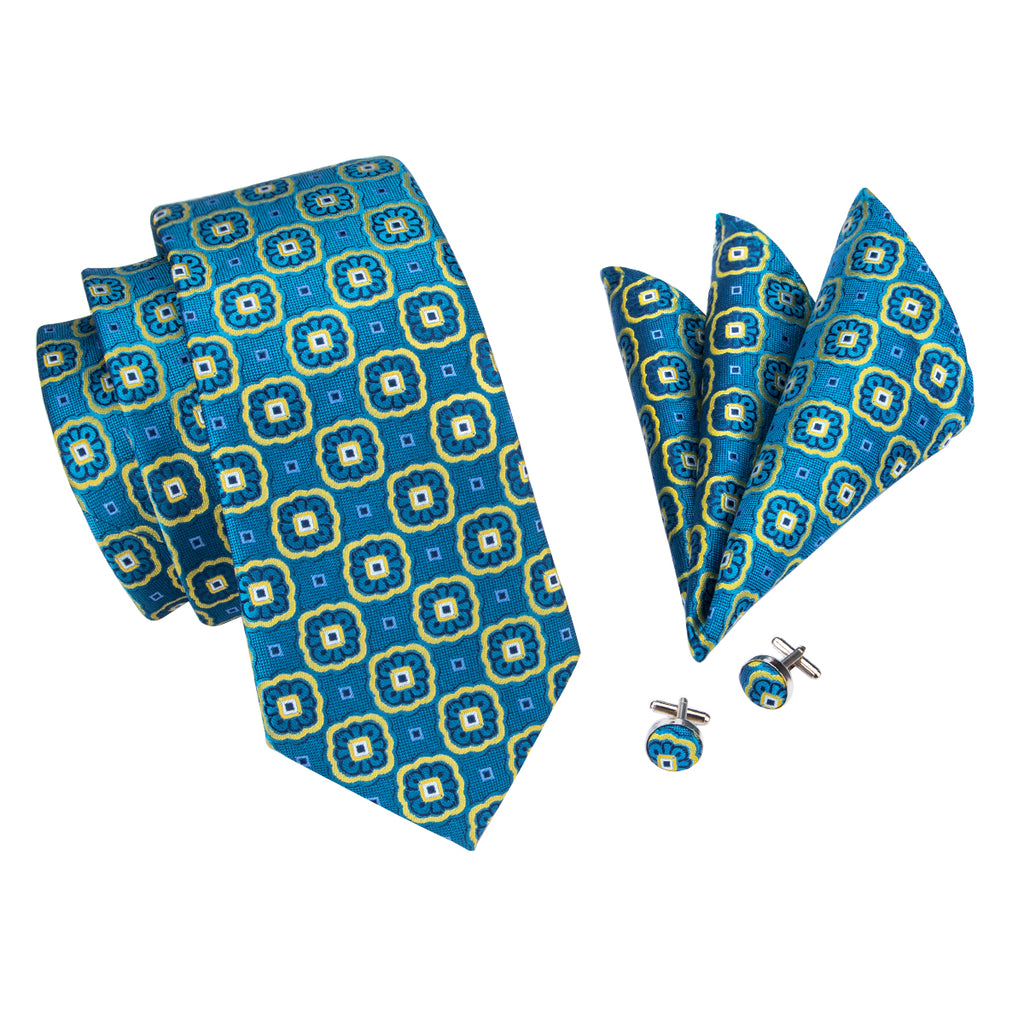 Teal Blue and Yellow Geometric Silk Necktie Set LBW1612