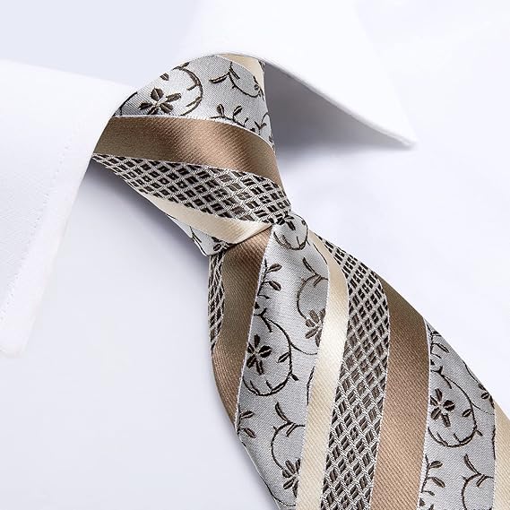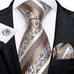 Khaki Brown and Grey Striped Necktie Set-LBW1508